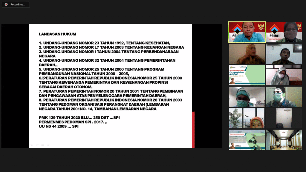 Inspektorat Jenderal Kemenkes RI : Peran SPI pada Pengawasan Manajemen & Pelayanan RS (21 Desember 2020), 100 peserta.