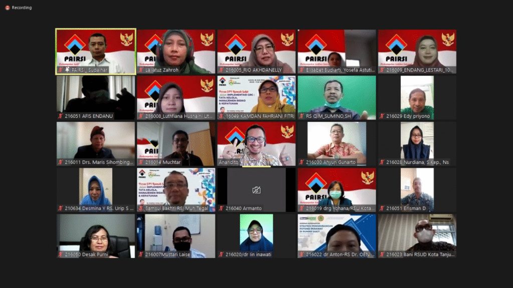 Webinar “Peran SPI RS dalam Implementasi GRC: Tata Kelola, Manajemen Risiko & Kepatuhan”(Kamis, 16 Juni 2022) 58 peserta.