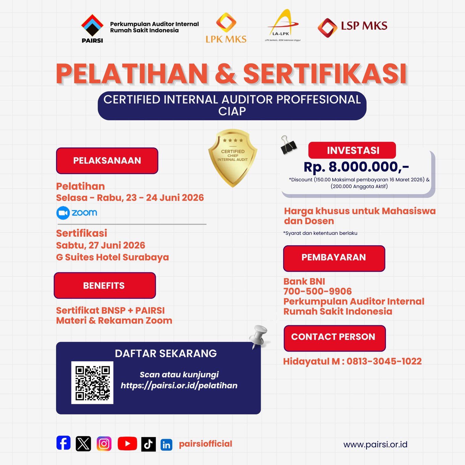 *Discount (150.000 maksimal pembayaran 16 Maret 2026 & 200.000 anggota PAIRSI aktif)